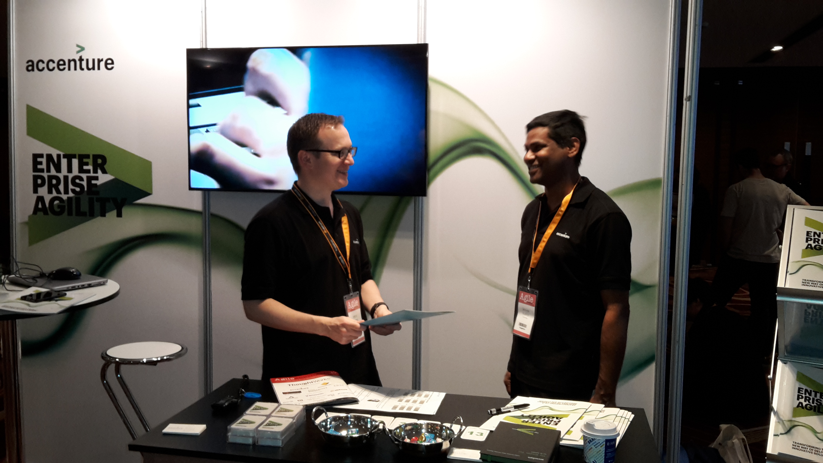 here it was again the annual gathering of Agilists in Australia – This year in Sydney. The Accenture team turned up in force and we put together a nice little booth as well. Our Planning poker cards were popular with the audience (and of course with our own team too). The booth and the client drinks on the first day gave us the opportunity to talk to people who are adopting Agile in their organisations, many new faces but also many familiar faces who we have been working with for many years. It’s always good to catch-up and get the latest update on someone’s Agile journey. A lot of work goes into organising a conference. A thank you to SlatteryIT for getting a great conference produced each year. Our team put a lot of effort into our part of it, the booth, the presentation and manning the booth. Thanks team!