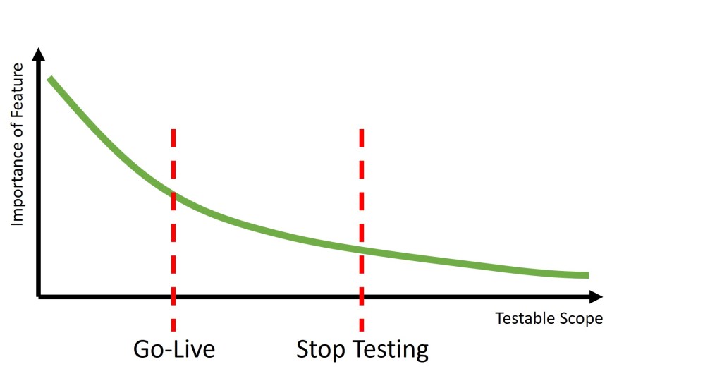 What we are saying here is that you might decide to go live due to the business benefits, but that you will continue testing in parallel with stakeholders using the application in production to flush out lower-risk problems. The idea is that if a user beats us to find a problem that the impact is acceptable. Less frequently used features or lower-value features might qualify here for post-go-live testing, you wouldn’t want to hold back high-value features from going live if an untested feature is unlikely to be used in production before we get to test it.