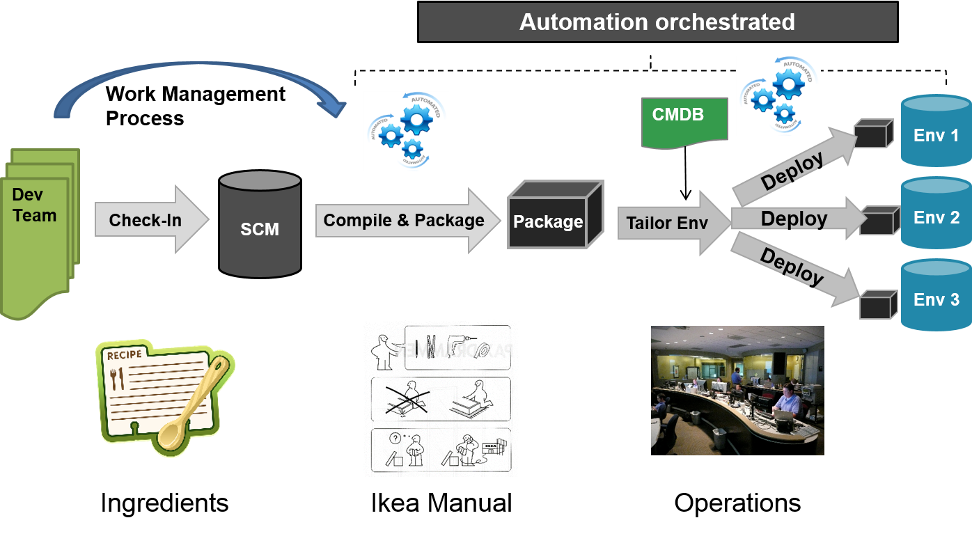 Once you have all the moving parts, you need to understand how it all fits together. Custom Application usually require explicit instructions which makes it much easier to define and automate the instruction set. For systems of record packaging and deployment is often done through UIs and there is usually more than one way of doing it. Experienced operators have found their own short cuts and the reliability of the system depends on having the right guy in the operating centre (I have some stories to tell about not having the right guy on go-live weekend).